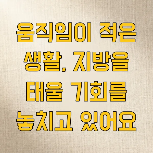 움직임이 적은 생활, 지방을 태울 기회를 놓치고 있어요